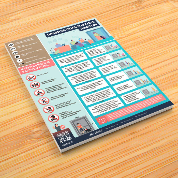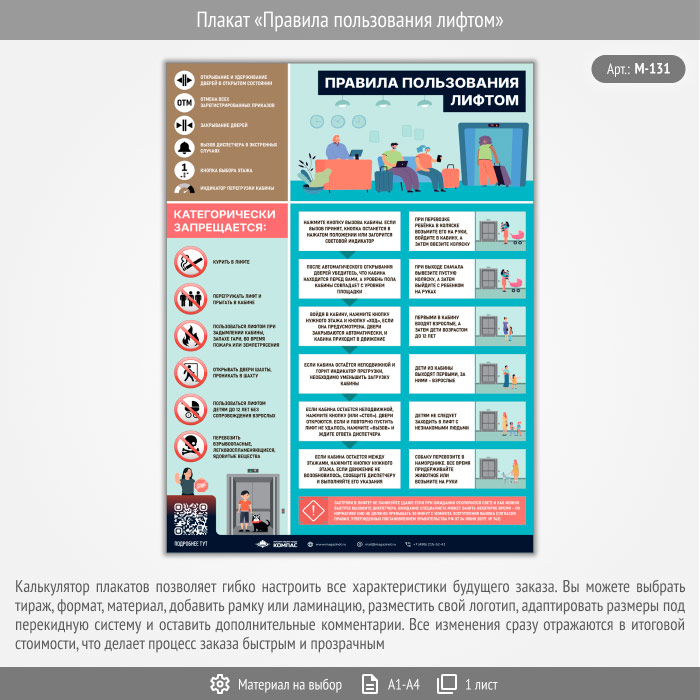 Плакат «Правила пользования лифтом» с QR (М-131, 1 лист) в Альметьевске купить