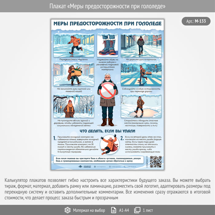Плакат «Меры предосторожности при гололеде» с QR (М-133, 1 лист) в Альметьевске купить