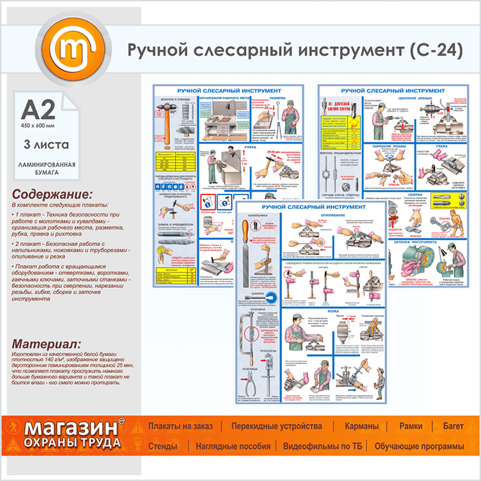 Плакаты «Ручной слесарный инструмент» (С-24, ламинированная бумага, А2, 3 листа) в Альметьевске купить