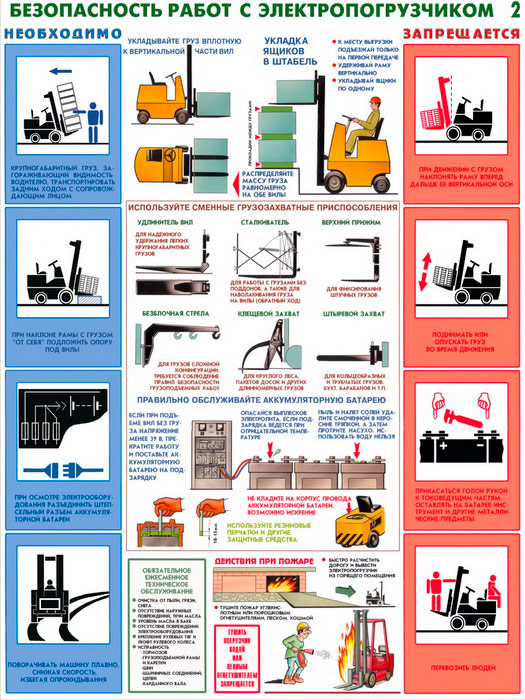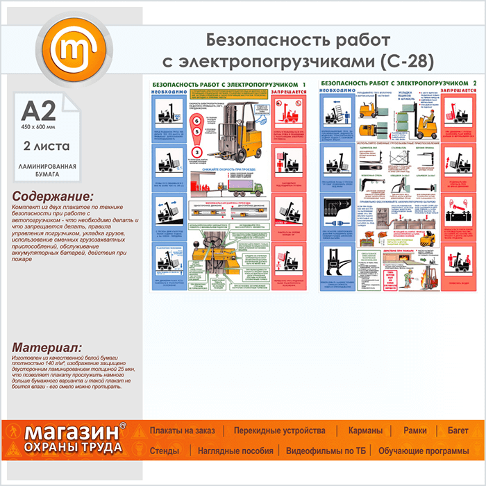 Плакаты «Безопасность работ с электропогрузчиками» (С-28, ламинированная бумага, А2, 2 листа) в Альметьевске купить