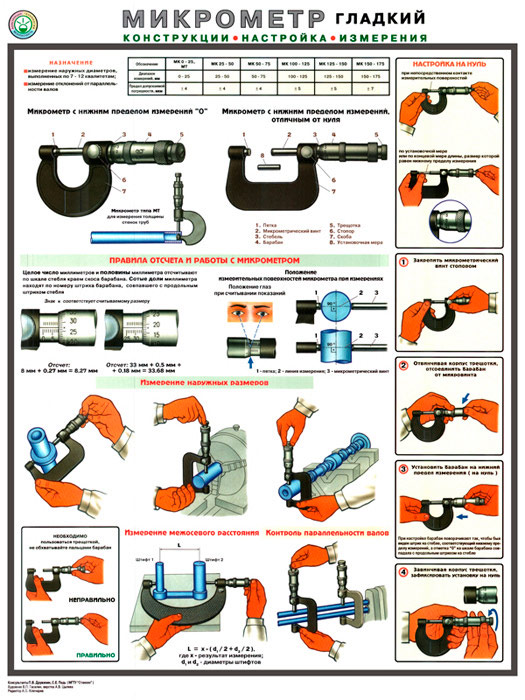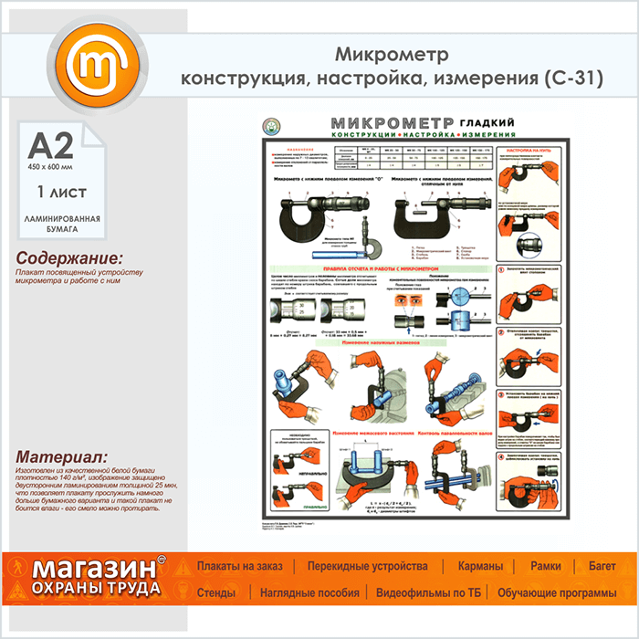 Плакат «Микрометр - конструкция, настройка, измерения» (С-31, ламинированная бумага, А2, 1 лист) в Альметьевске купить