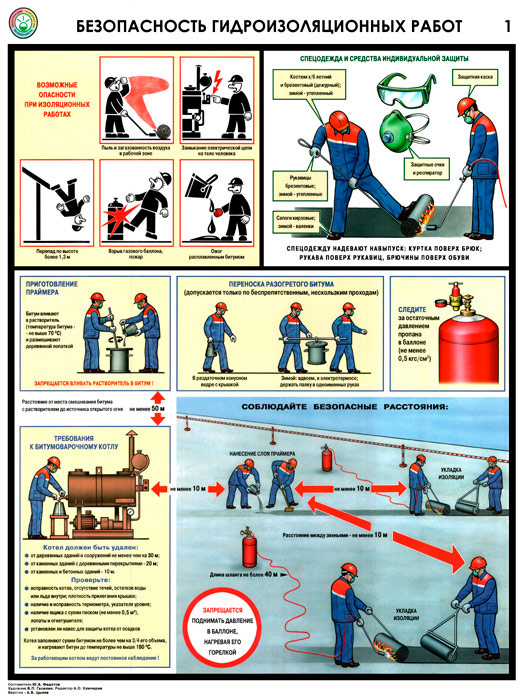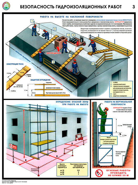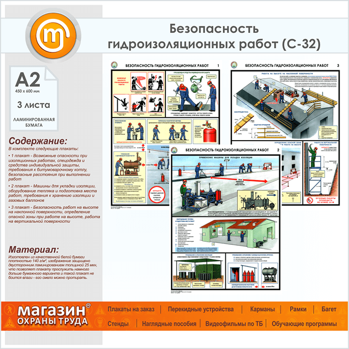 Плакаты «Безопасность гидроизоляционных работ» (С-32, ламинированная бумага, А2, 3 листа) в Альметьевске купить