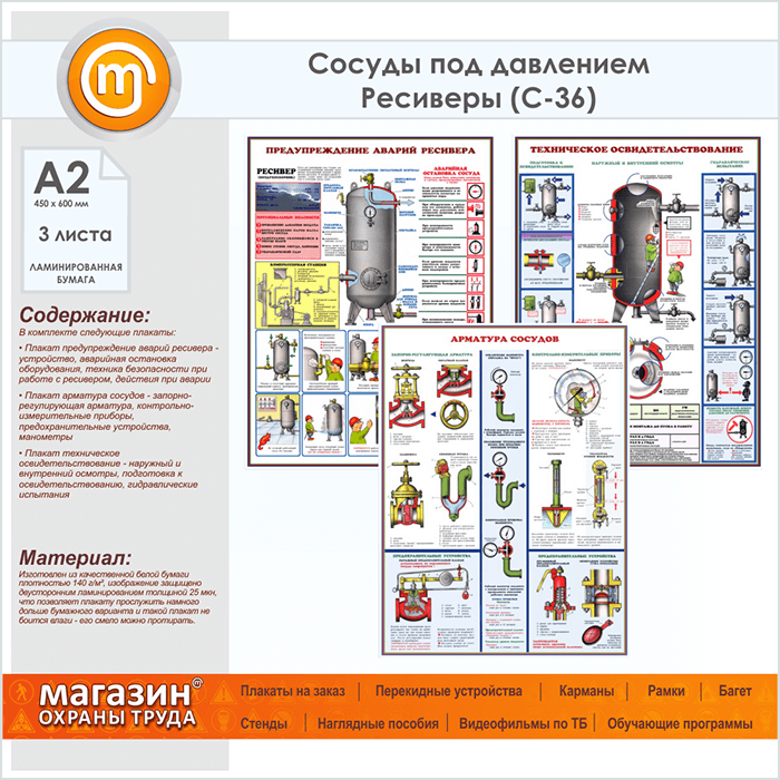 Плакаты «Сосуды под давлением. Ресиверы» (С-36, ламинированная бумага, А2, 3 листа) в Альметьевске купить
