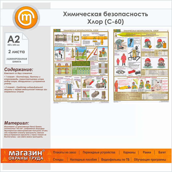 Плакаты «Химическая безопасность. Хлор» (С-60, ламинированная бумага, А2, 2 листа) в Альметьевске купить
