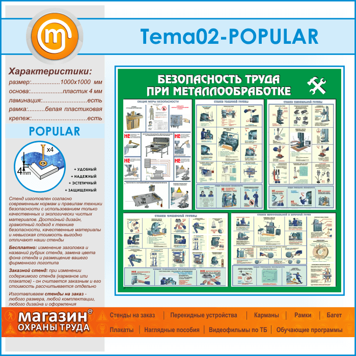 Стенд «Безопасность труда при металлообработке» (TM-02-POPULAR) в Альметьевске купить