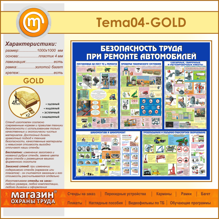 Стенд «Безопасность труда при ремонте автомобилей» (TM-04-GOLD) в Альметьевске купить