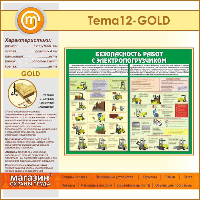 Стенд «Безопасность работ с электропогрузчиком» (TM-12-GOLD) в Альметьевске купить