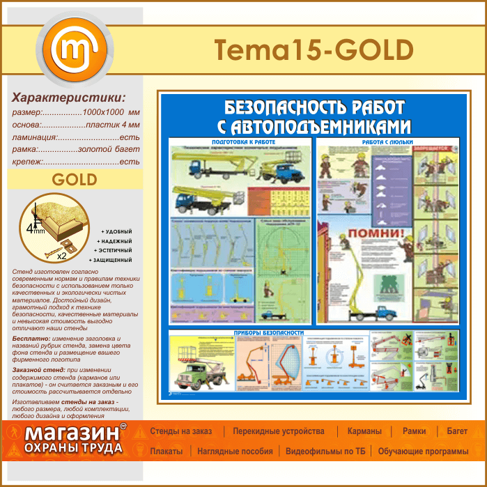 Стенд «Безопасность работ с автоподъемниками» (TM-15-GOLD) в Альметьевске купить