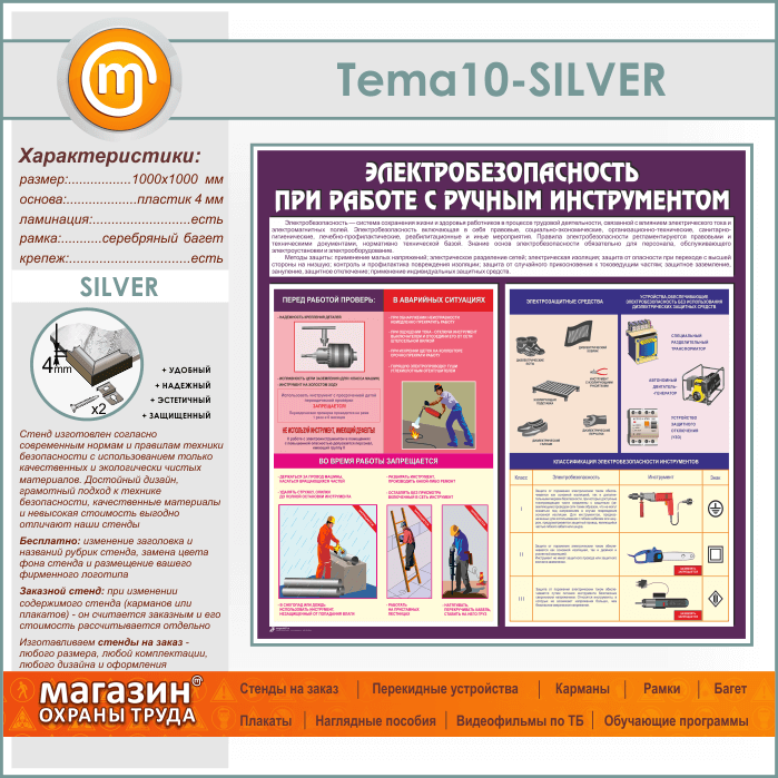 Стенд «Электробезопасность при работе с ручным инструментом» (TM-10-SILVER) в Альметьевске купить