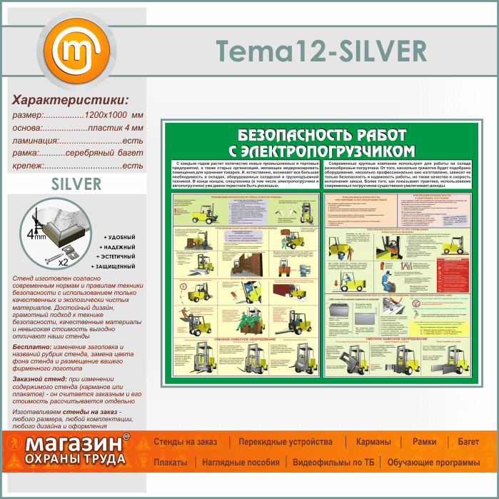 Стенд «Безопасность работ с электропогрузчиком» (TM-12-SILVER) в Альметьевске купить