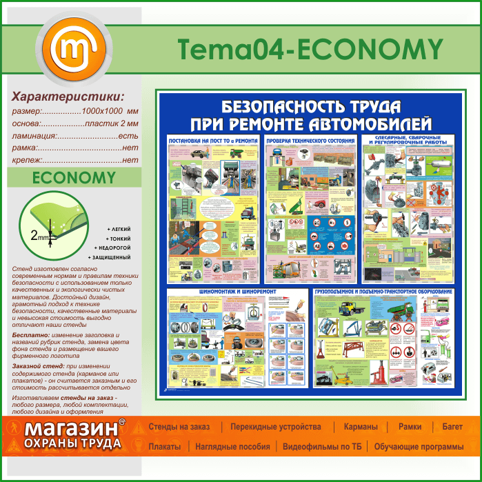 Стенд «Безопасность труда при ремонте автомобилей» (TM-04-ECONOMY) в Альметьевске купить