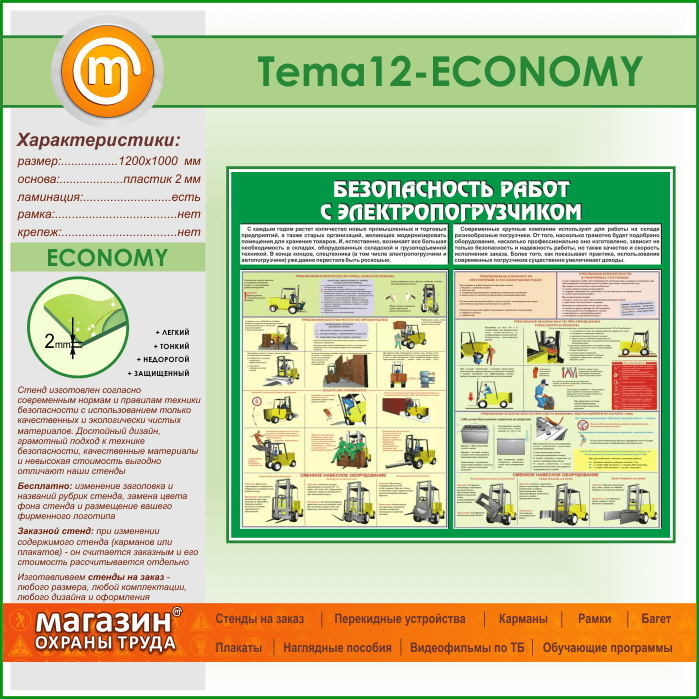 Стенд «Безопасность работ с электропогрузчиком» (TM-12-ECONOMY) в Альметьевске купить