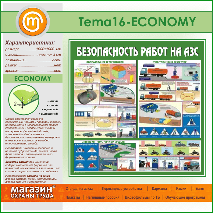 Стенд «Безопасность работ на автозаправочных станциях» (TM-16-ECONOMY) в Альметьевске купить