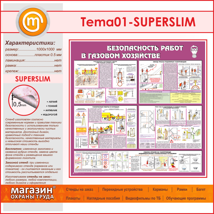 Стенд «Безопасность работ в газовом хозяйстве» (TM-01-SUPERSLIM) в Альметьевске купить
