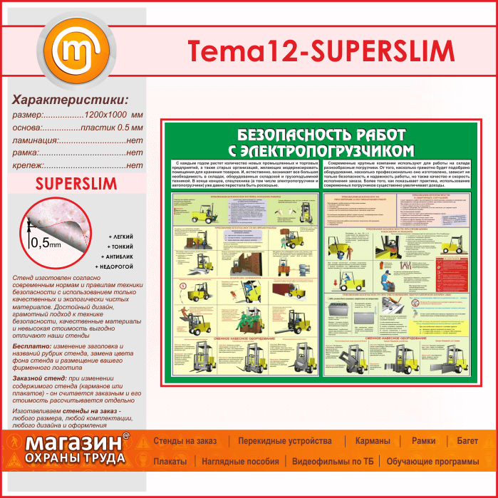 Стенд «Безопасность работ с электропогрузчиком» (TM-12-SUPERSLIM) в Альметьевске купить