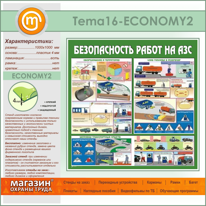 Стенд «Безопасность работ на автозаправочных станциях» (TM-16-ECONOMY2) в Альметьевске купить