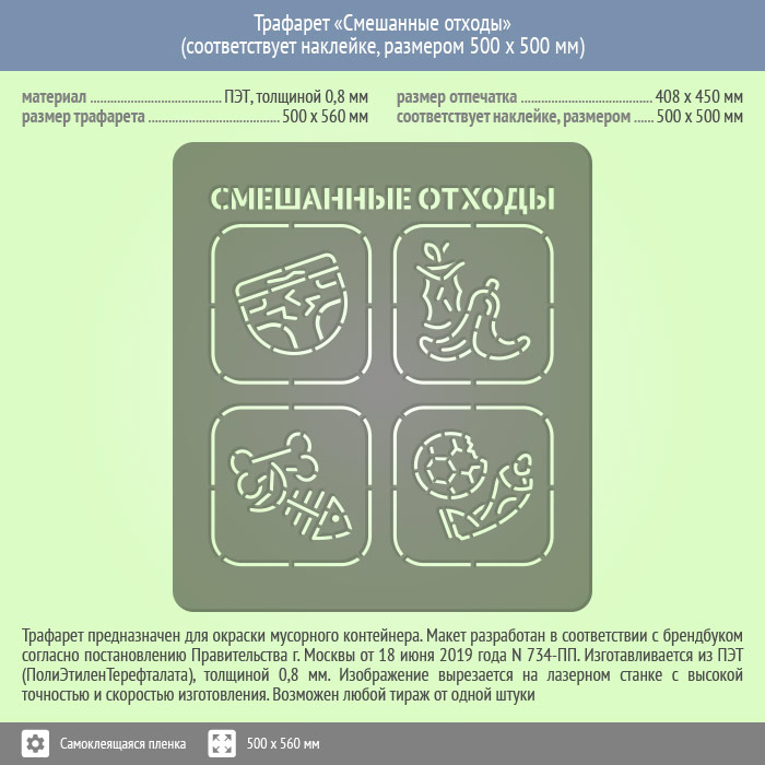 Трафарет «Смешанные отходы» (соответствует наклейке, размером 500х500 мм) в Альметьевске купить