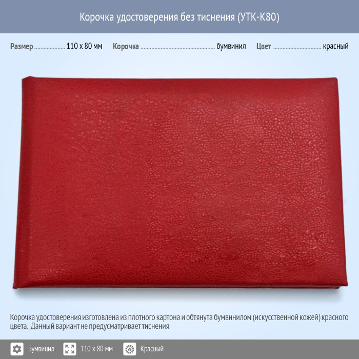 Бланк удостоверения без тиснения, красная, 110 x 80 мм (УТК-К80) | Бланк удостоверения без тиснения, красная, 110 x 80 мм (УТК-К80) |