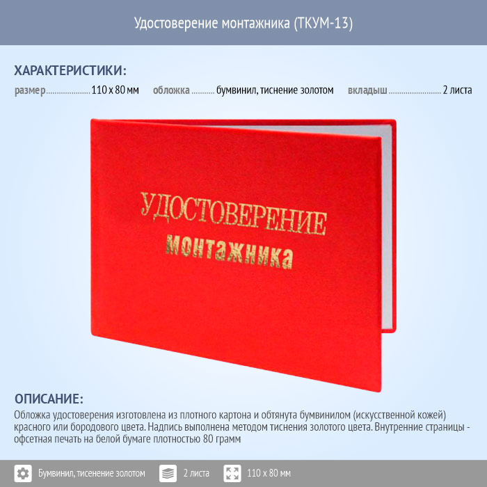 Бланк удостоверения монтажника (ТКУМ-13) в Альметьевске купить