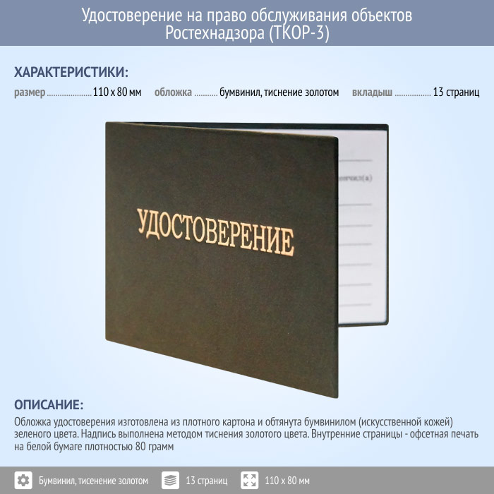 Бланк удостоверения на право обслуживания объектов Ростехнадзора (ТКОР-3) в Альметьевске купить