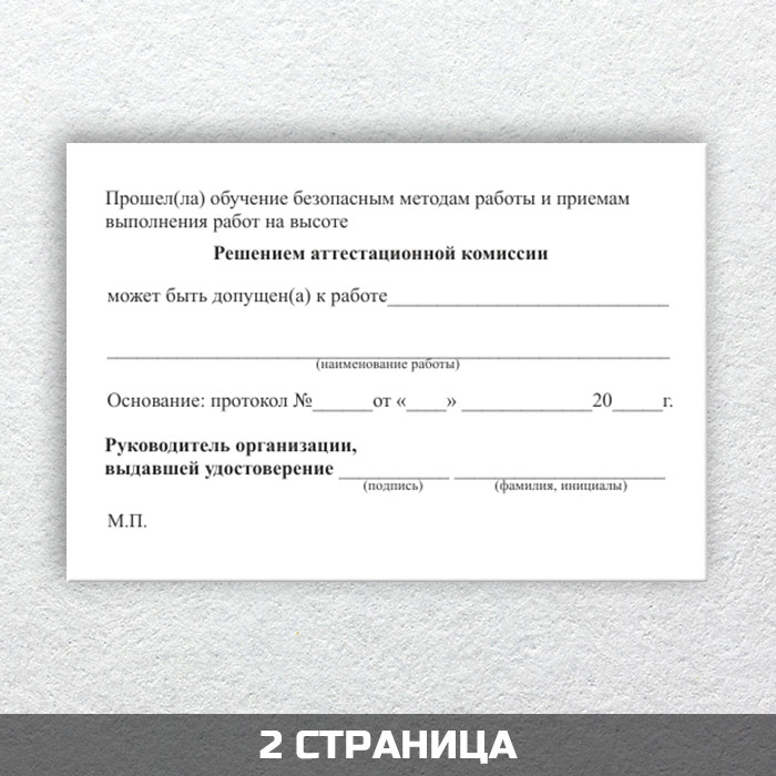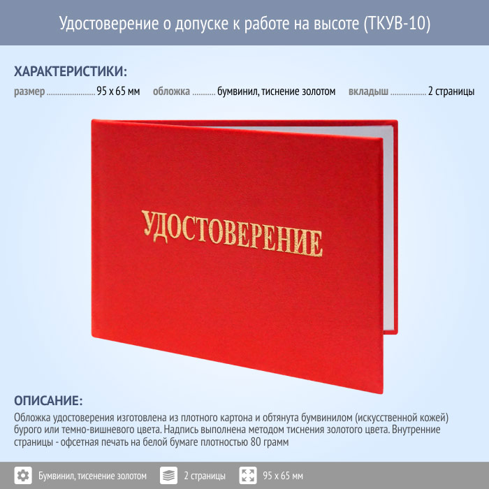 Бланк удостоверения о допуске к работе на высоте (ТКУВ-10) в Альметьевске купить