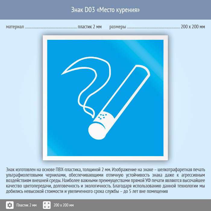 Знак D03 «Место курения» (пластик, 200х200 мм) в Альметьевске купить