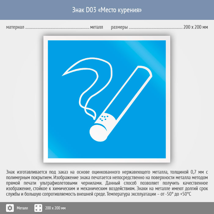 Знак D03 «Место курения» (металл, 200х200 мм) в Альметьевске купить