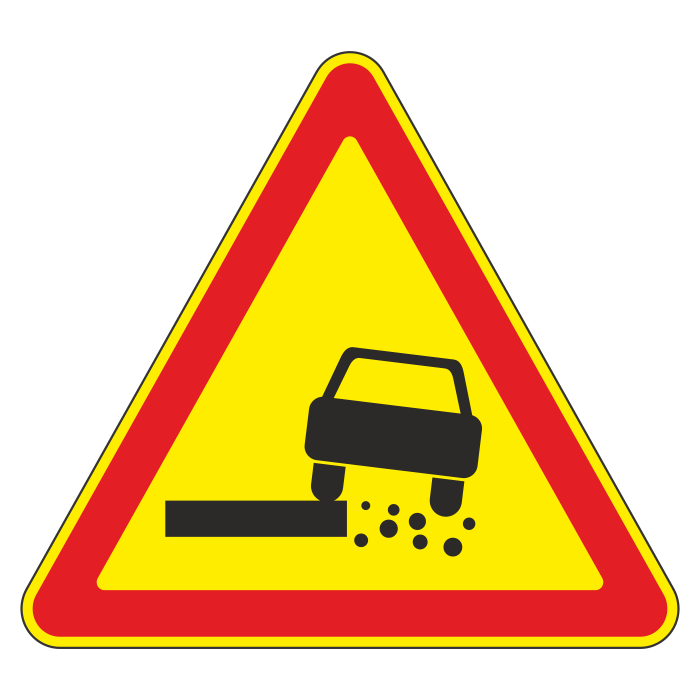 Дорожный знак 1.19 «Опасная обочина» (временный) (металл 0,8 мм, III типоразмер: сторона 1200 мм, С/О пленка: тип А инженерная) в Альметьевске купить