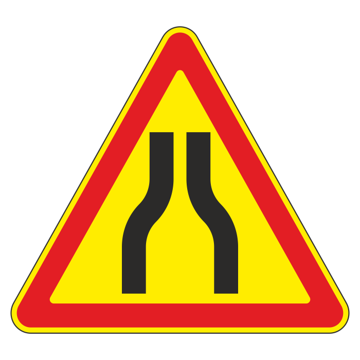 Дорожный знак 1.20.1 «Сужение дороги» (временный) (металл 0,8 мм, III типоразмер: сторона 1200 мм, С/О пленка: тип А инженерная) в Альметьевске купить