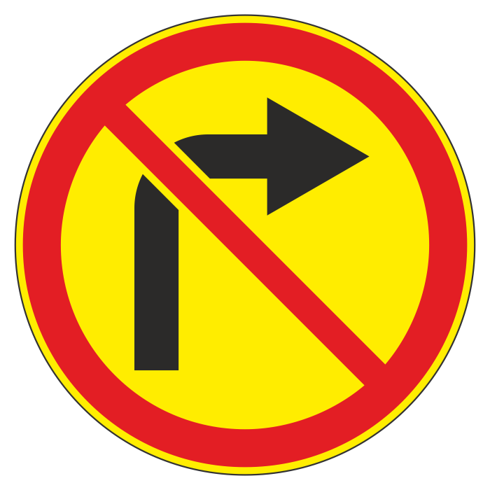 Дорожный знак 3.18.1 «Поворот направо запрещен» (временный) (металл 0,8 мм, III типоразмер: диаметр 900 мм, С/О пленка: тип А инженерная) в Альметьевске купить