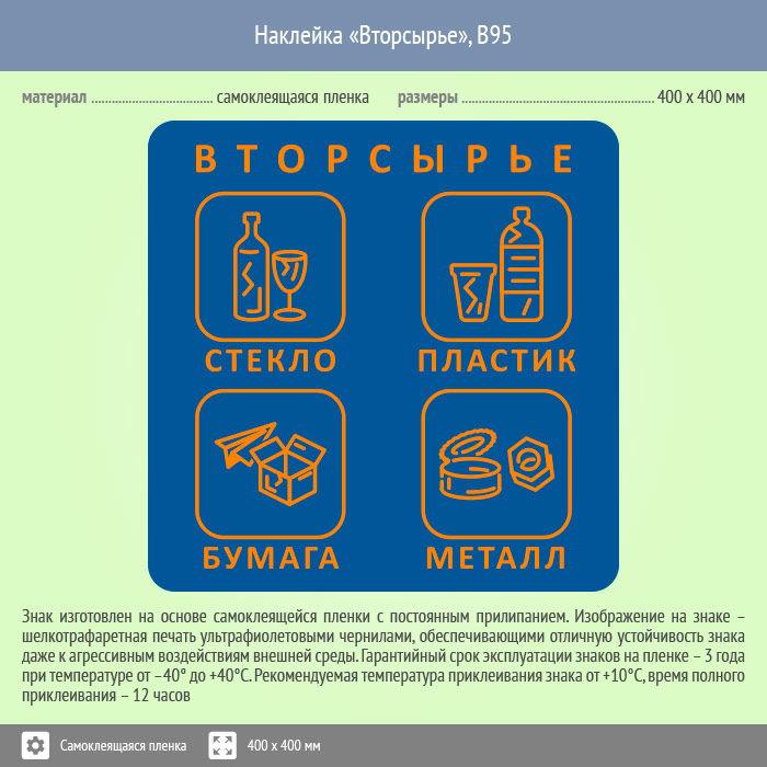 Наклейка на бак «Вторсырьё», B95 (пленка, 400х400 мм) в Альметьевске купить