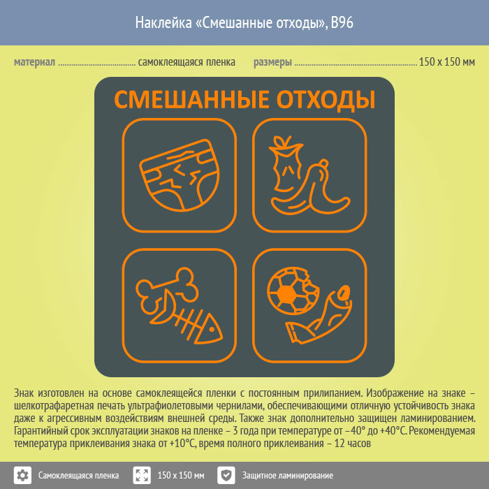 Наклейка на бак «Смешанные отходы», B96 (пленка c ламинированием, 150х150 мм) в Альметьевске купить