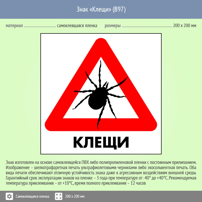 Знак «Клещи», B97 (пленка, 300х300 мм) в Альметьевске купить