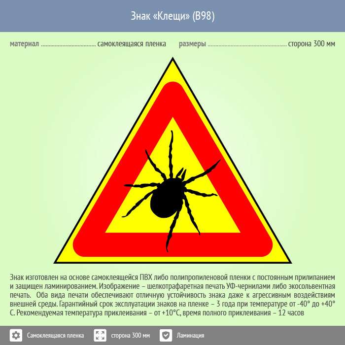 Знак «Клещи», B98 (пленка c ламинированием, сторона 200 мм) в Альметьевске купить