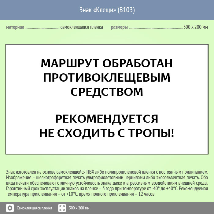 Знак «Клещи», B103 (пленка, 400х300 мм) в Альметьевске купить