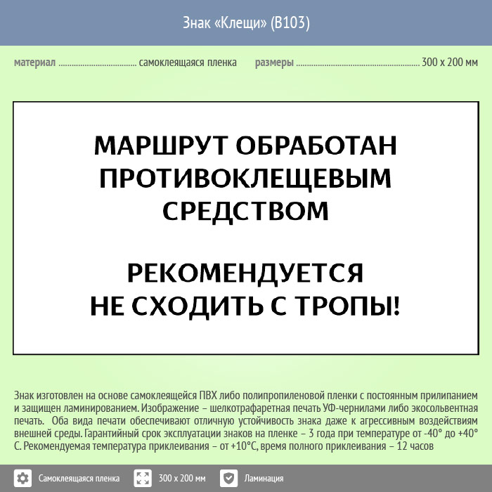 Знак «Клещи», B103 (пленка c ламинированием, 400х300 мм) в Альметьевске купить