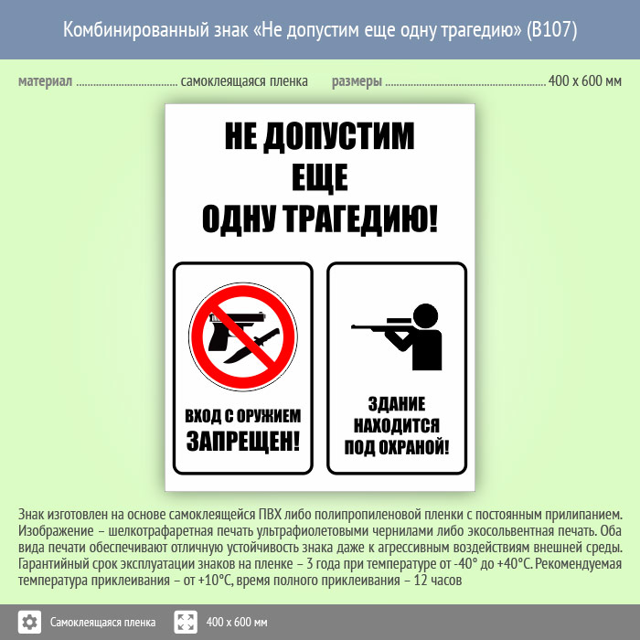 Комбинированный знак «Не допустим еще одну трагедию», B107 (пленка, 400х600 мм) в Альметьевске купить