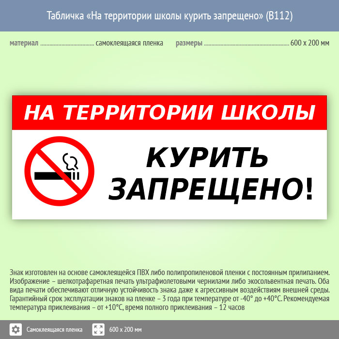 Табличка «На территории школы курить запрещено», B112 (пленка, 600х200 мм) в Альметьевске купить
