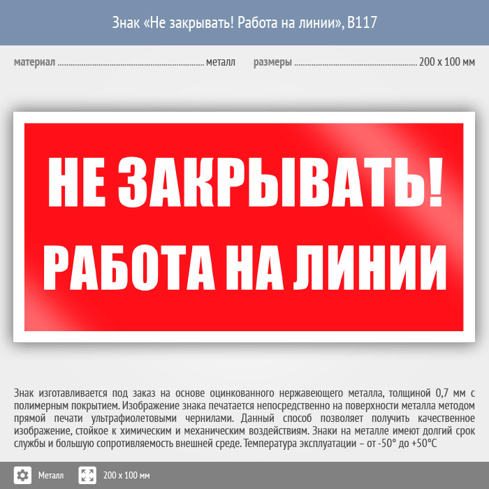 Знак «Не закрывать! Работа на линии», B117 (металл, 200х100 мм) в Альметьевске купить