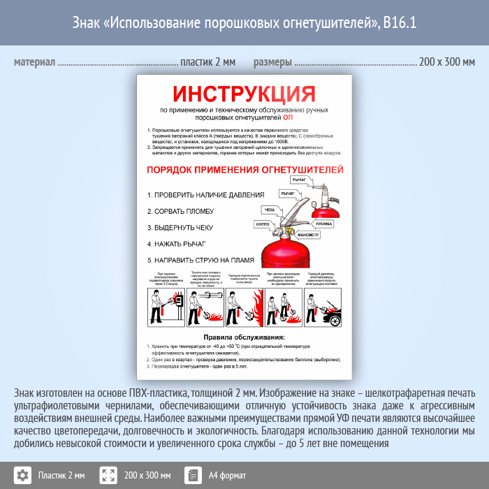 Знак «Использование порошковых огнетушителей», B16.1 (пластик, 200х300 мм) в Альметьевске купить