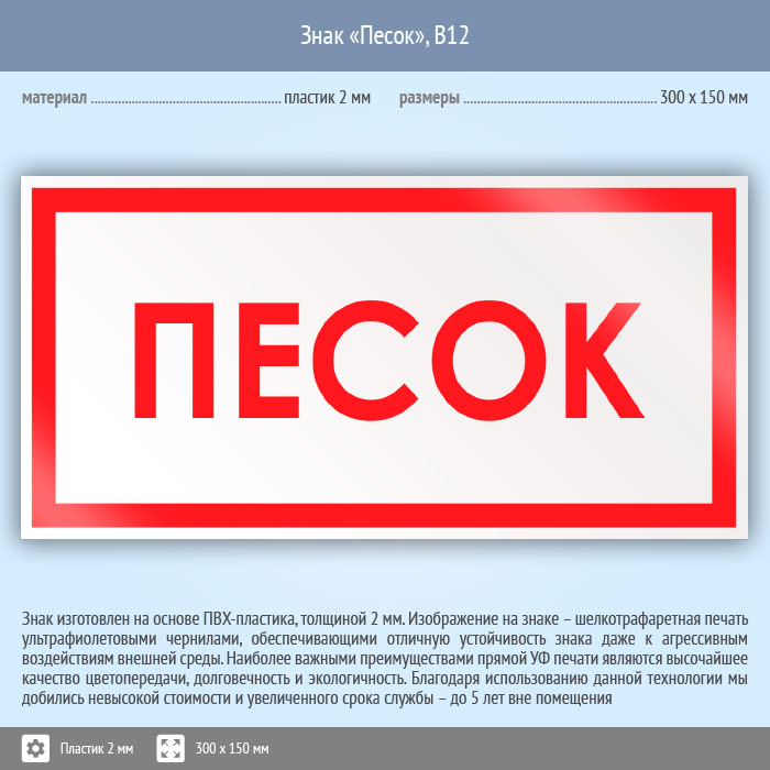 Знак «Песок», B12 (пластик, 300х150 мм) в Альметьевске купить