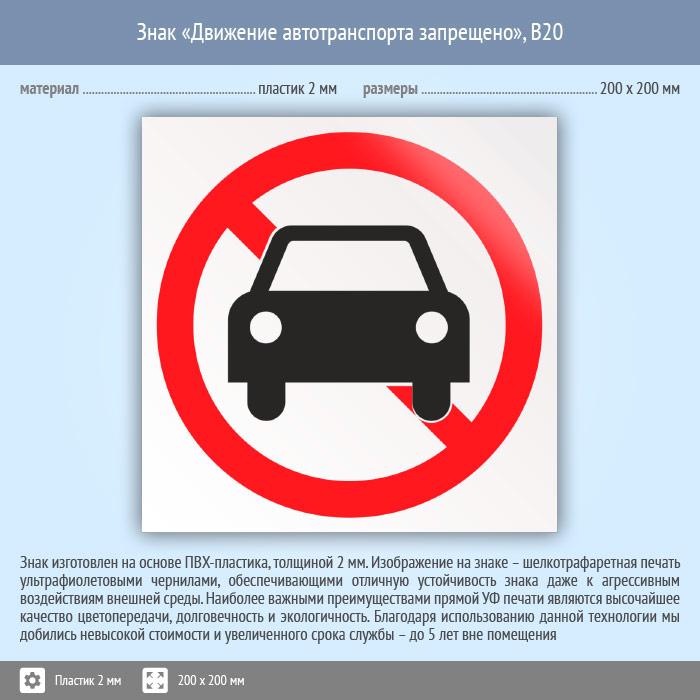 Знак «Движение автотранспорта запрещено», B20 (пластик, 200х200 мм) в Альметьевске купить