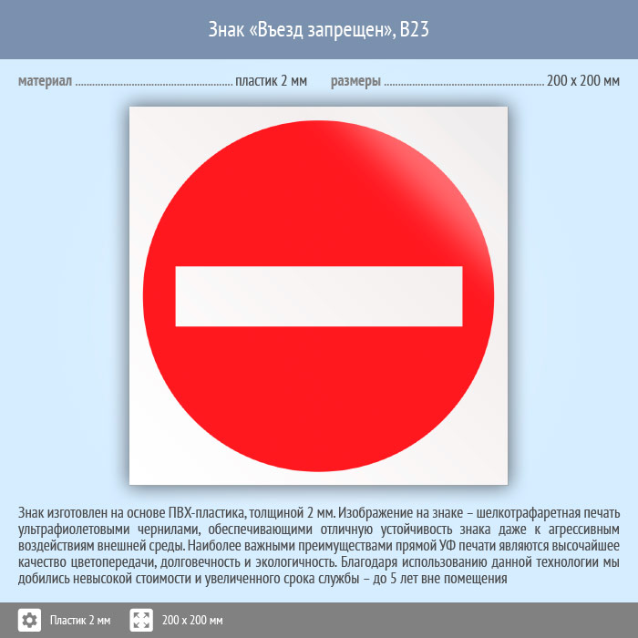 Знак «Въезд запрещен», B23 (пластик, 200х200 мм) в Альметьевске купить