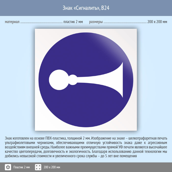 Знак «Сигналить», B24 (пластик, 200х200 мм) в Альметьевске купить