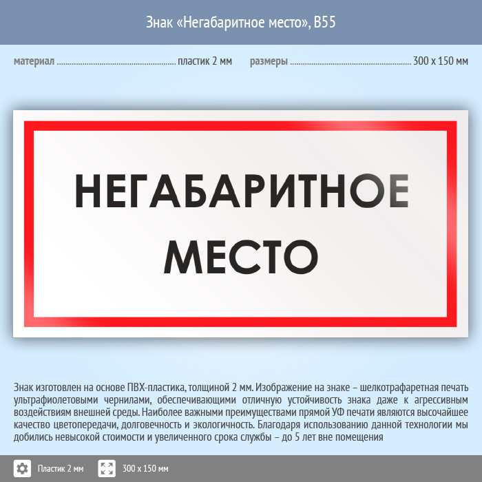 Знак «Негабаритное место», B55 (пластик, 300х150 мм) в Альметьевске купить