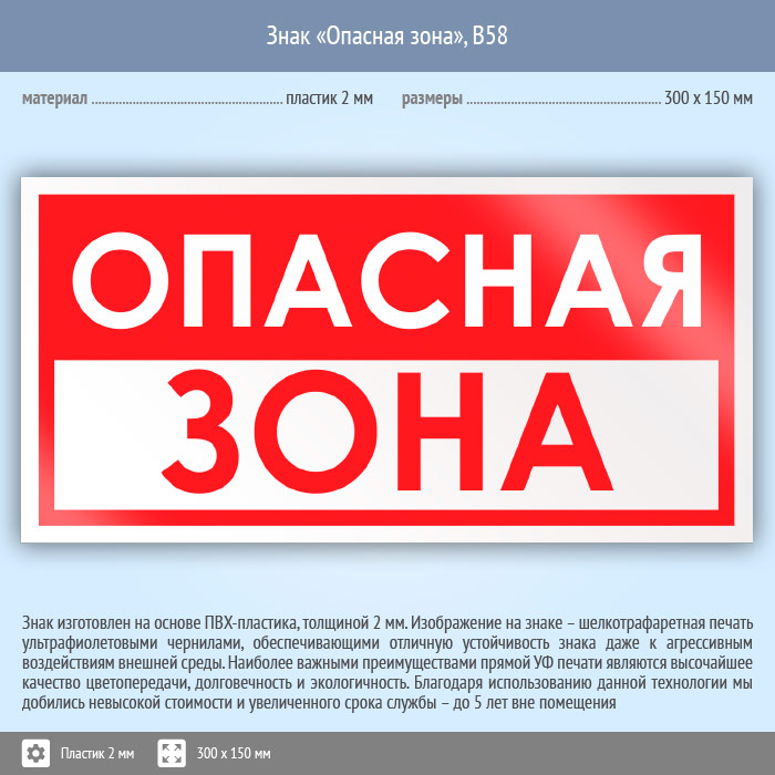 Знак «Опасная зона», B58 (пластик, 300х150 мм) в Альметьевске купить