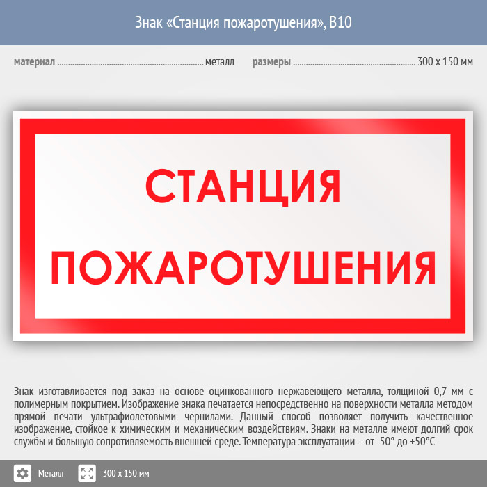 Знак «Станция пожаротушения», B10 (металл, 300х150 мм) в Альметьевске купить