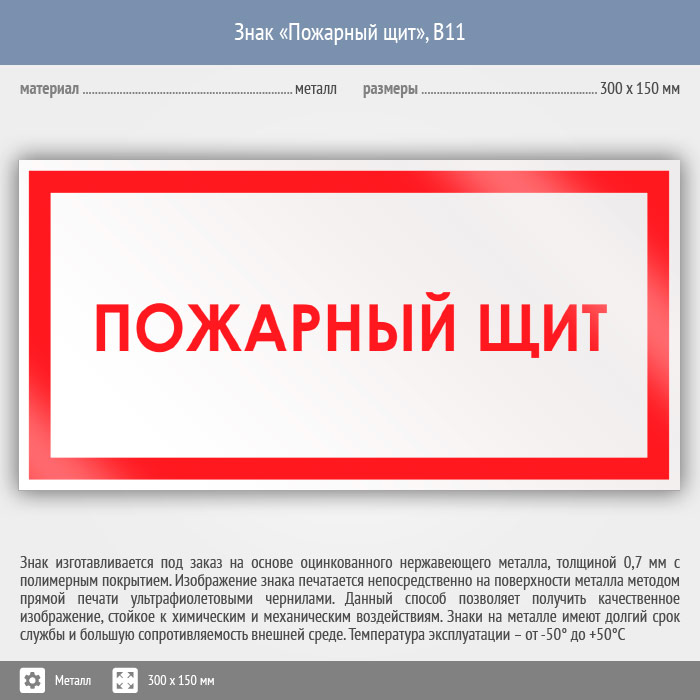 Знак «Пожарный щит», B11 (металл, 300х150 мм) в Альметьевске купить