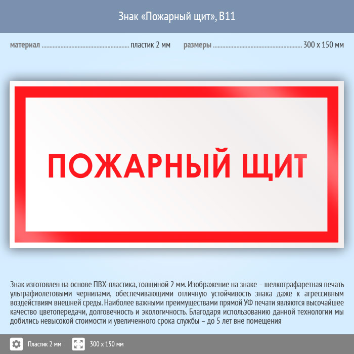 Знак «Пожарный щит», B11 (пластик, 300х150 мм) в Альметьевске купить