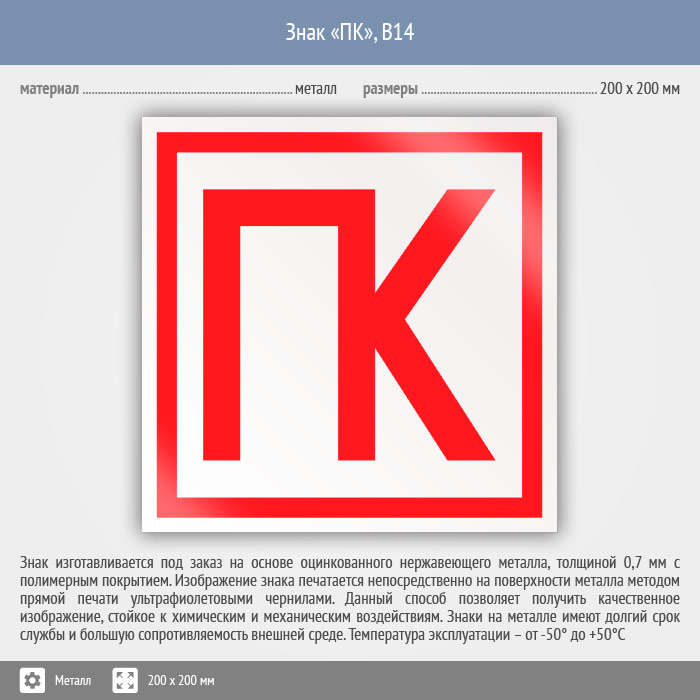 Знак «ПК», B14 (металл, 200х200 мм) в Альметьевске купить
